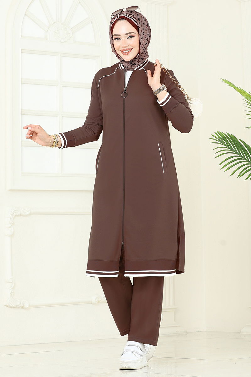 Şerit Detay Tesettür Takım Kahve