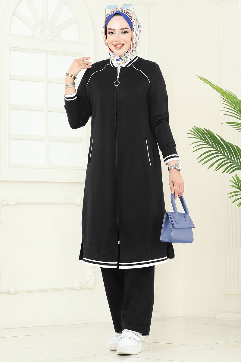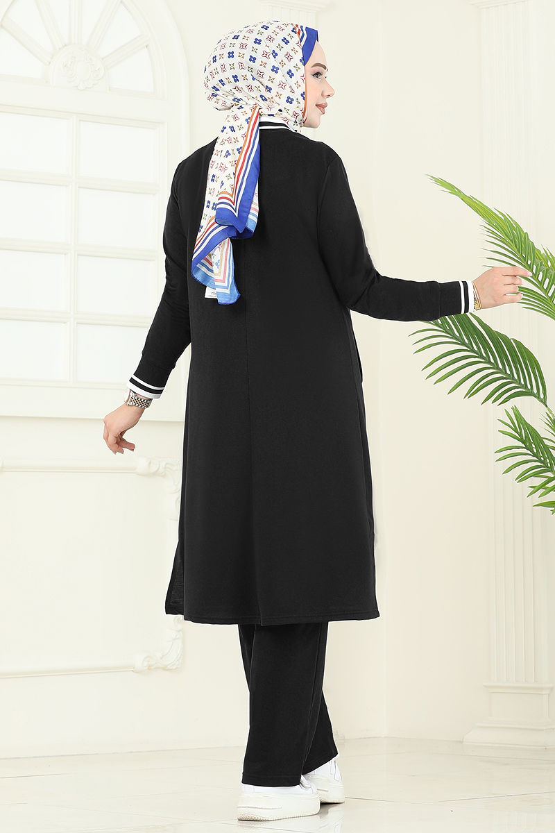 Şerit Detay Tesettür Takım Siyah