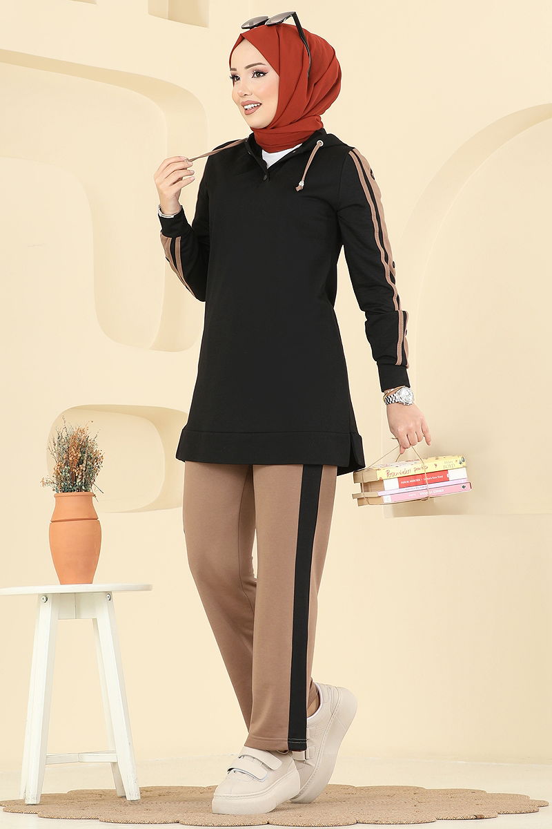 Ürün Özelliği : Yeni sezon tesettür moda ürünüdür. Yaka bağcık aktiftir. Ürün Kapşonlu yakadır. Astarsızdır. Çıtçıt detayları aktiftir. Kapşon ürüne dikilidir. Pantolon beli lastiklidir.Konsept fotoğraf çekimlerinden dolayı üründe ton farklılığı olabilir.