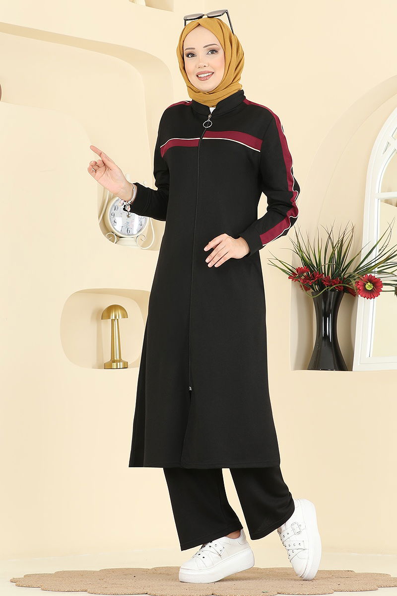 Şerit Detaylı İki İplik Takım PL9194 Siyah