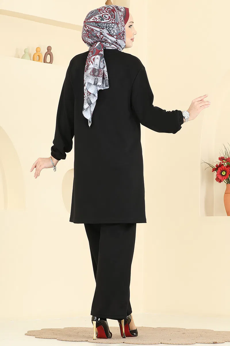 Şık ve konforlu bir seçim arayanlar için ideal olan Şerit Detaylı Modal Takım, dört mevsim rahatlıkla kullanılabilir. Modal kumaşın yumuşak dokusu ve hava alabilirliği sayesinde gün boyu rahat edebilirsiniz. Hassas yıkama ile 30 derecede yıkanabilen bu takım, yarım hakim yaka tasarımı ve astarsız yapısı ile konforu estetikle buluşturuyor. Şık taş detayları ile süslenmiş tunik ve elastik manşetli pantolon, modern tesettür modasının öne çıkan parçalarından.