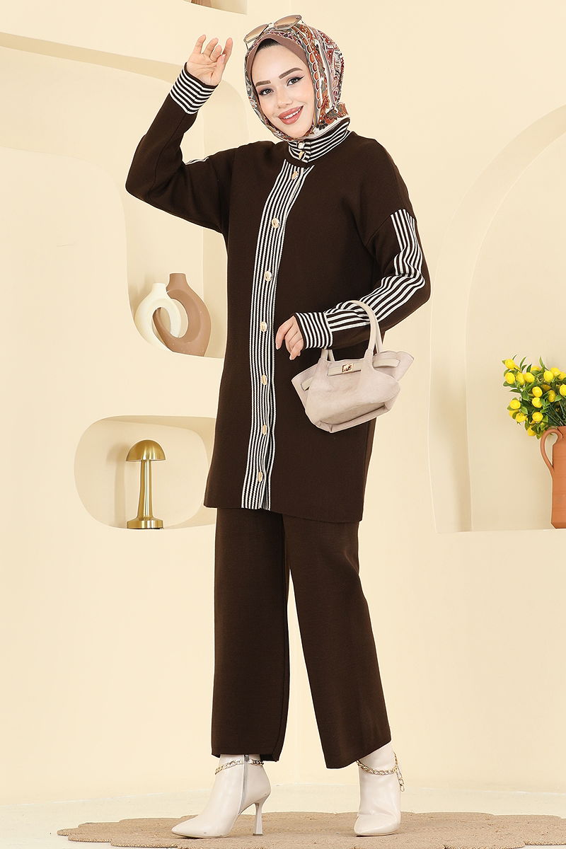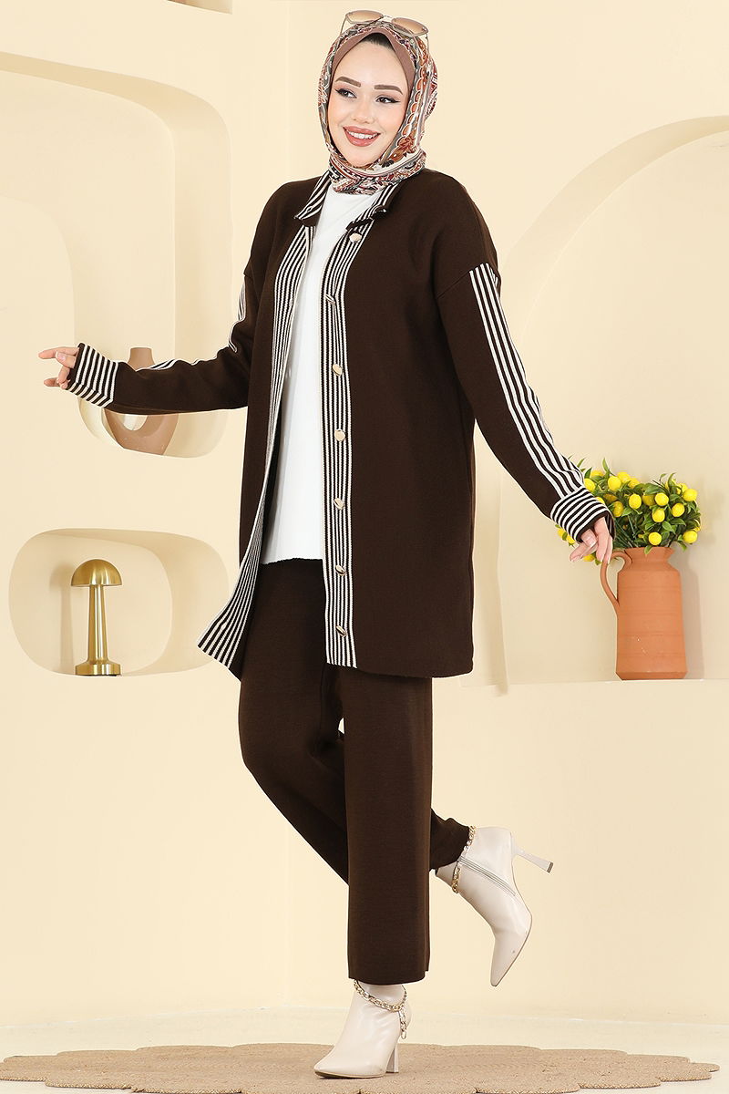 Şerit Detaylı Triko Takım 0690KLB1050 Kahve