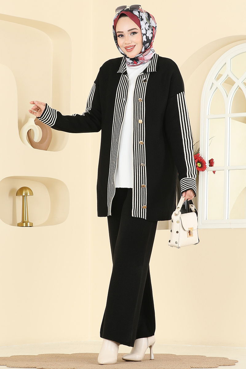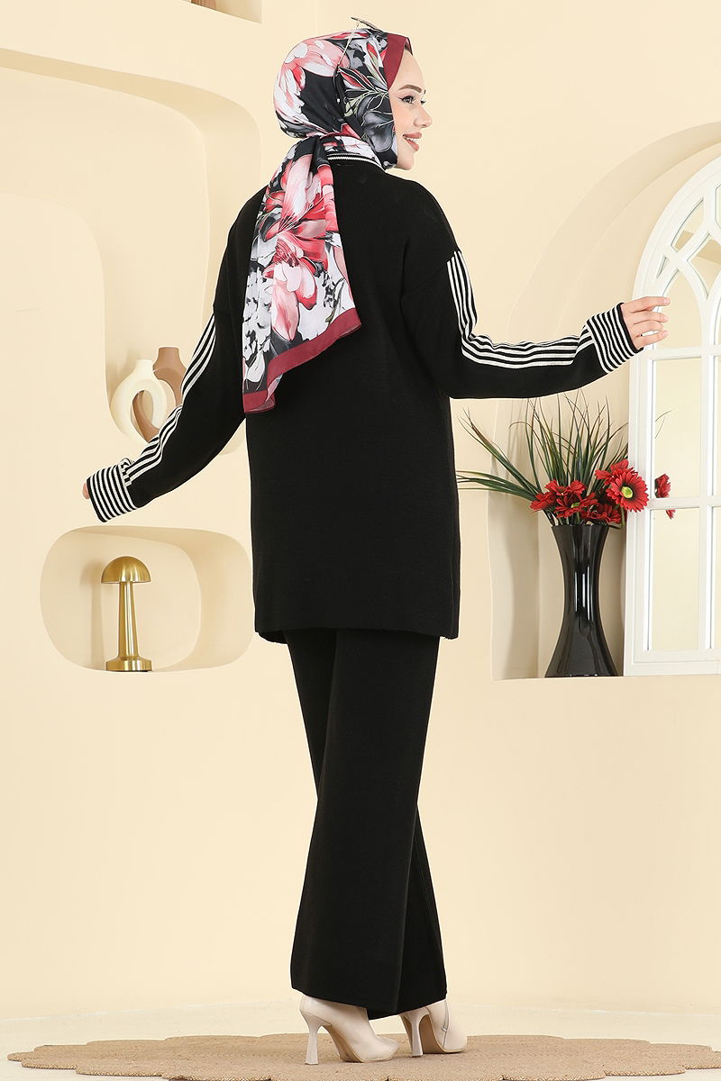 Şerit Detaylı Triko Takım 0690KLB1050 Siyah