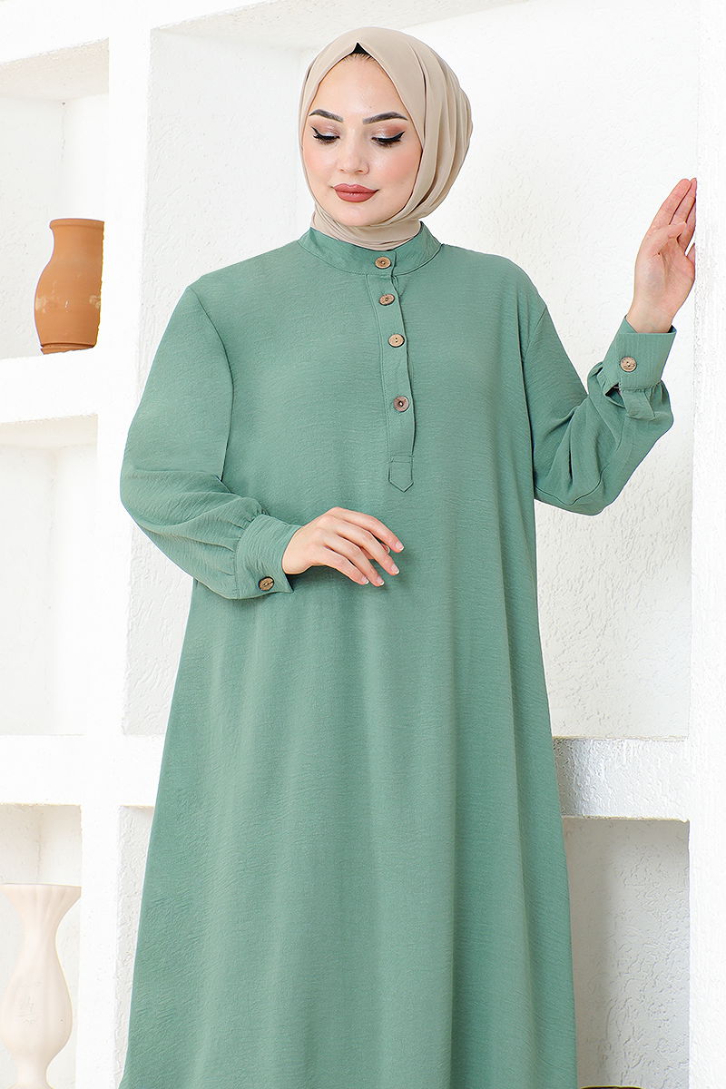 Product Feature : It is a new season hijab fashion product. The product is a bicycle collar. The product has front buttons. It is unlined. The skirt waist is elastic and laced. There may be a tonal difference in the product due to concept photo shoots.