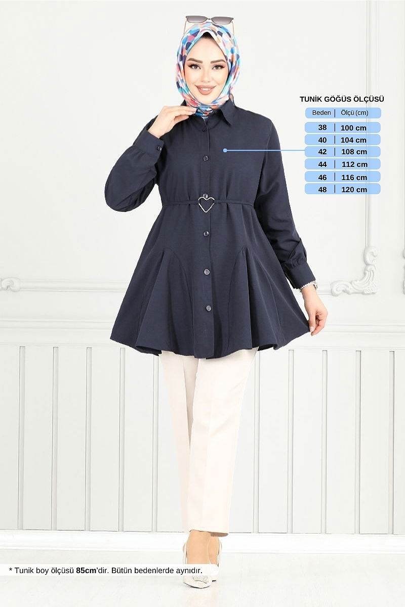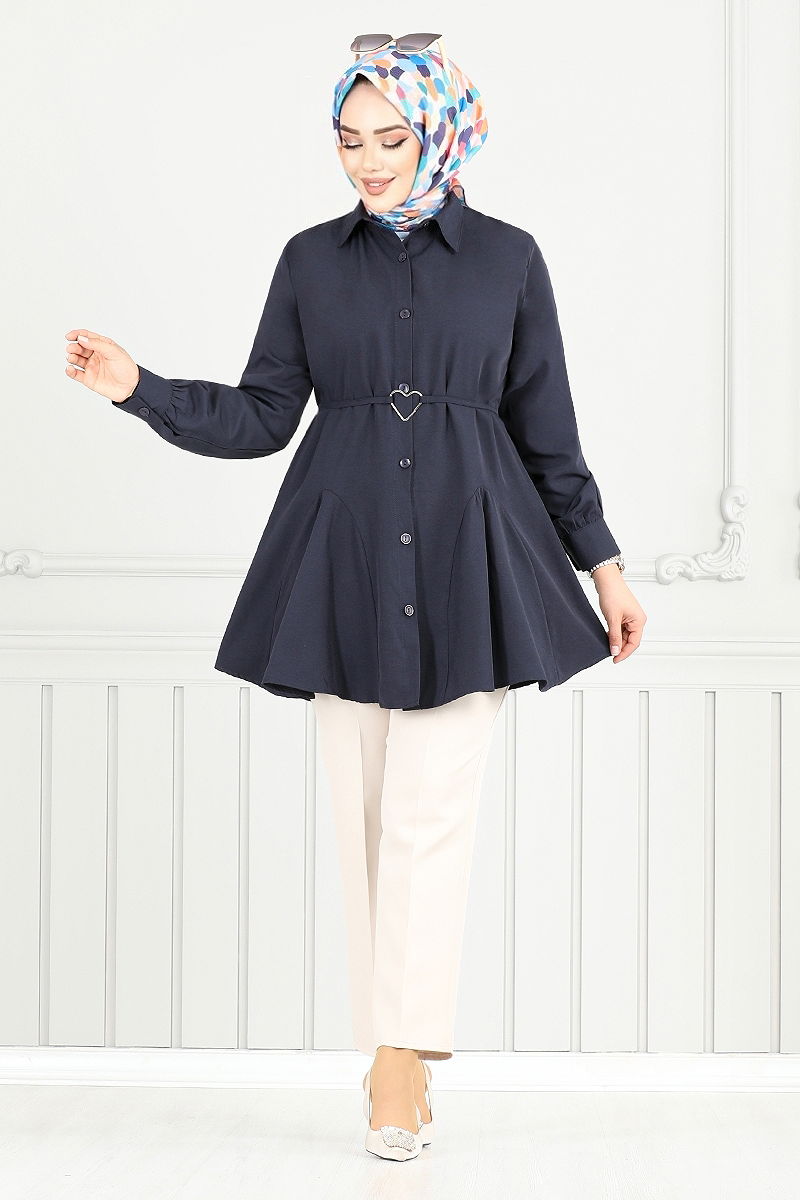 Product Feature : It is a new season hijab fashion product. The product has a Shirt collar. The product has From the front buttons. Unlined. Belt included, optional not available. There may be a tonal difference in the product due to concept photo shoots.