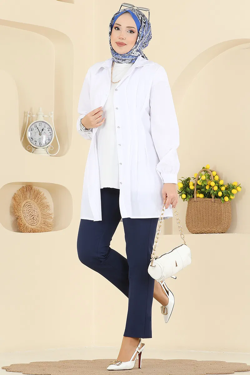 Product Feature : It is a new season hijab fashion product. The product has a Shirt collar. The product has From the front buttons. Unlined. Cuff buttons are active. There may be a tonal difference in the product due to concept photo shoots.