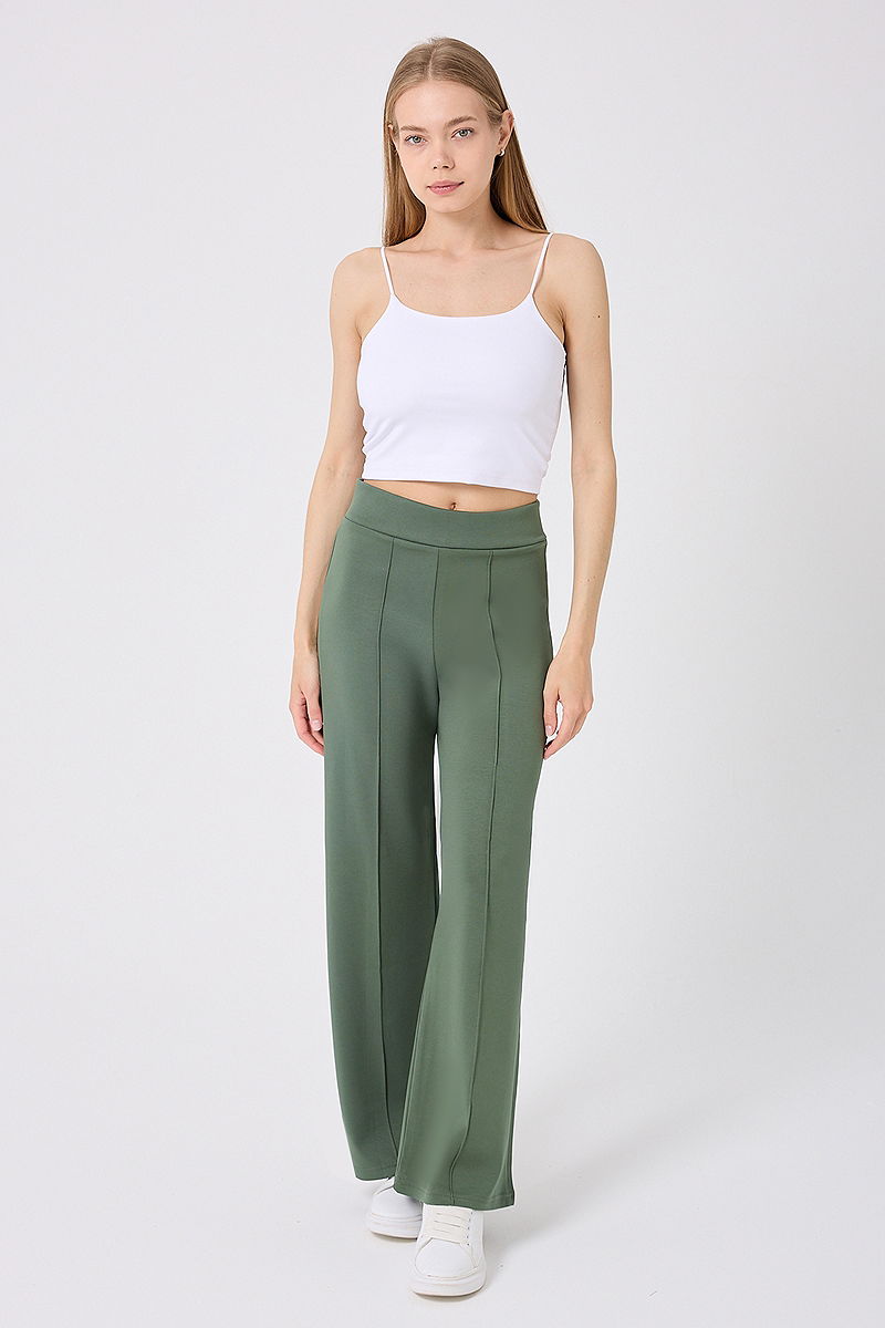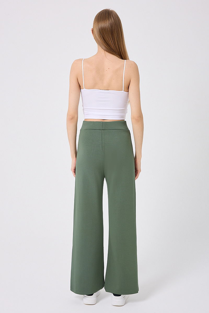 The Nervur Detail Palazzo Sweatpants are suitable for modest dressing and can be comfortably used in all seasons. Made from modal fabric, these pants are unlined and can be washed at 30 degrees with a gentle cycle. The waistband is elasticated, and the displayed model is size S.