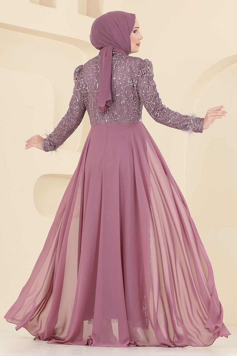 Şifon Pelerinli Şık Abiye Gül Kurusu