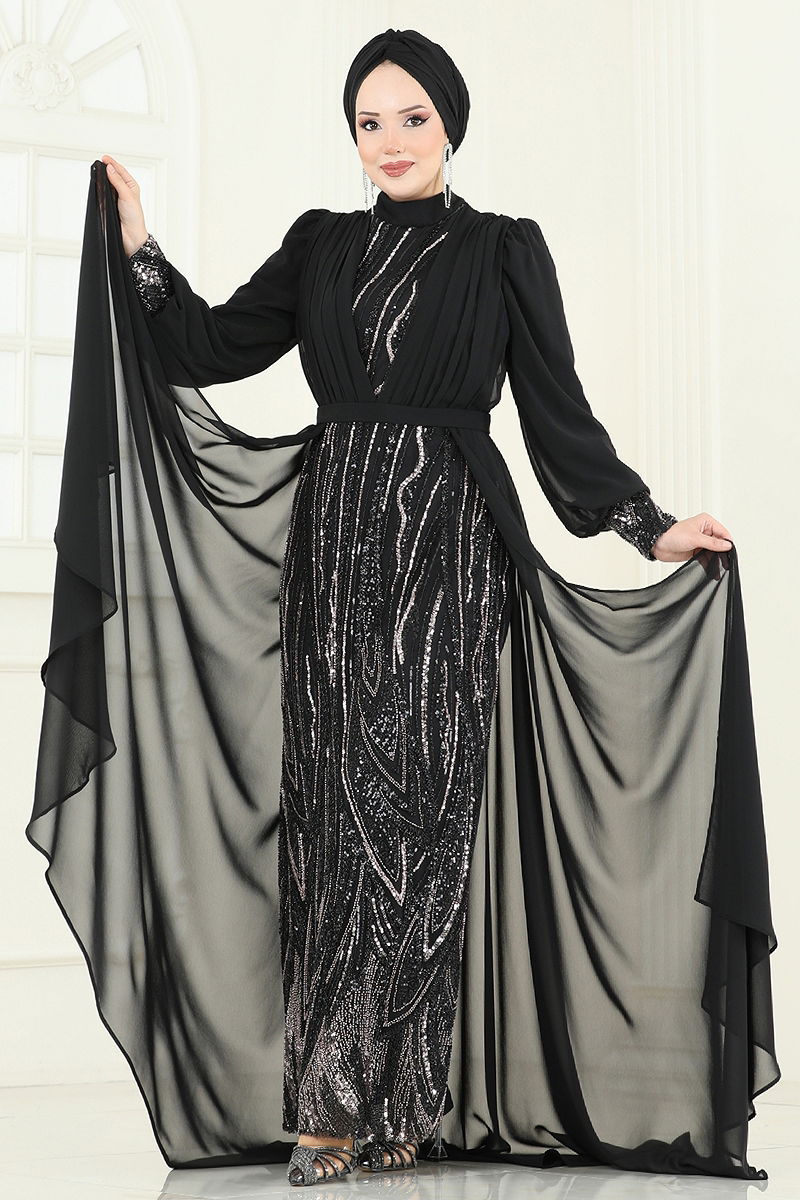 Ürün Özelliği : Yeni sezon tesettür moda ürünüdür. Ürün Hakim yakadır. Astarlıdır. Ürün Sırttan fermuarlıdır. Ürün beli dikişlidir. Şifon pelerin detayı dikilidir. Pul payet detayı dikilidir. Boncuk detayları dikilidir. Konsept fotoğraf çekimlerinden dolayı üründe ton farklılığı olabilir.