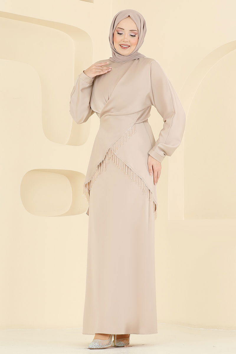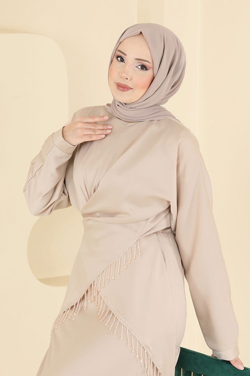 Ürün Özelliği : Yeni sezon tesettür moda ürünüdür. Ürün Bisiklet yakadır. Astarsızdır. Ürün Sırttan fermuarlıdır. Boncuk detaylar dikilidir.Konsept fotoğraf çekimlerinden dolayı üründe ton farklılığı olabilir.