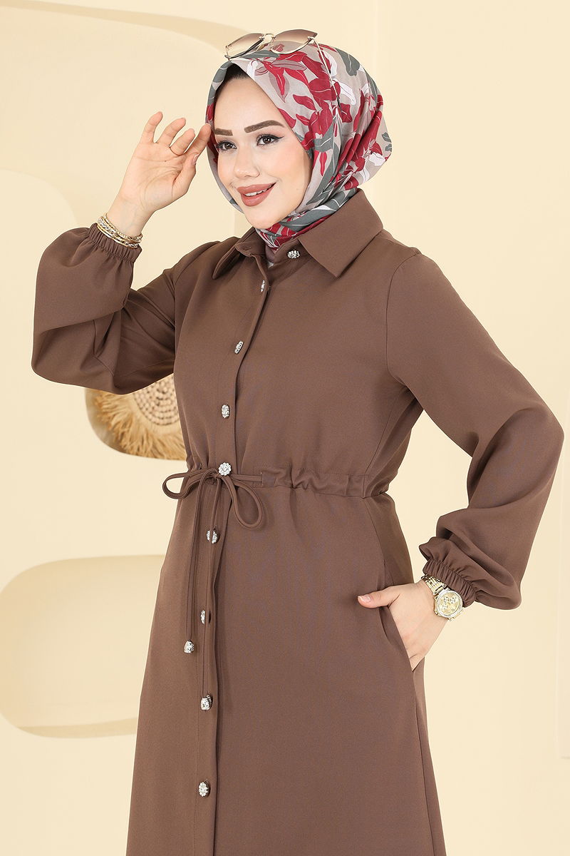 Şık ve modern tasarımı ile ön plana çıkan Düğmeli Dabıl Takım, dört mevsim rahatlıkla kullanabileceğiniz bir tesettür modelidir. Hassas yıkamaya uygun olan bu kombin, 30 derecede yıkanabilir ve dokuma Dabıl kumaştan üretilmiştir. Gömlek yaka ve ön düğmeli tasarımı ile pratik bir kullanım sunar. Astarsız olup, beli bağcıklı ve pantolon beli lastikli yapıdadır. Hem tunikte hem de pantolonda bulunan cepler ve manşet lastikleri ile fonksiyonellik artırılmıştır.