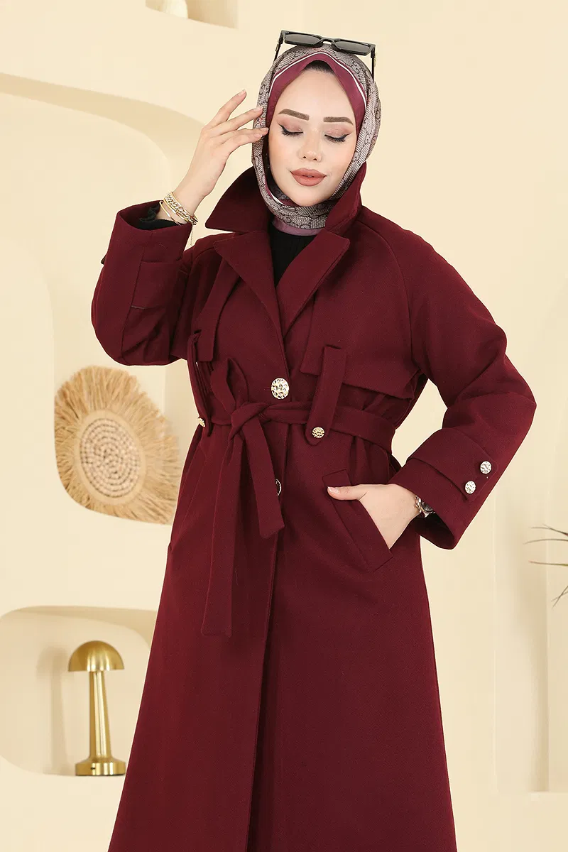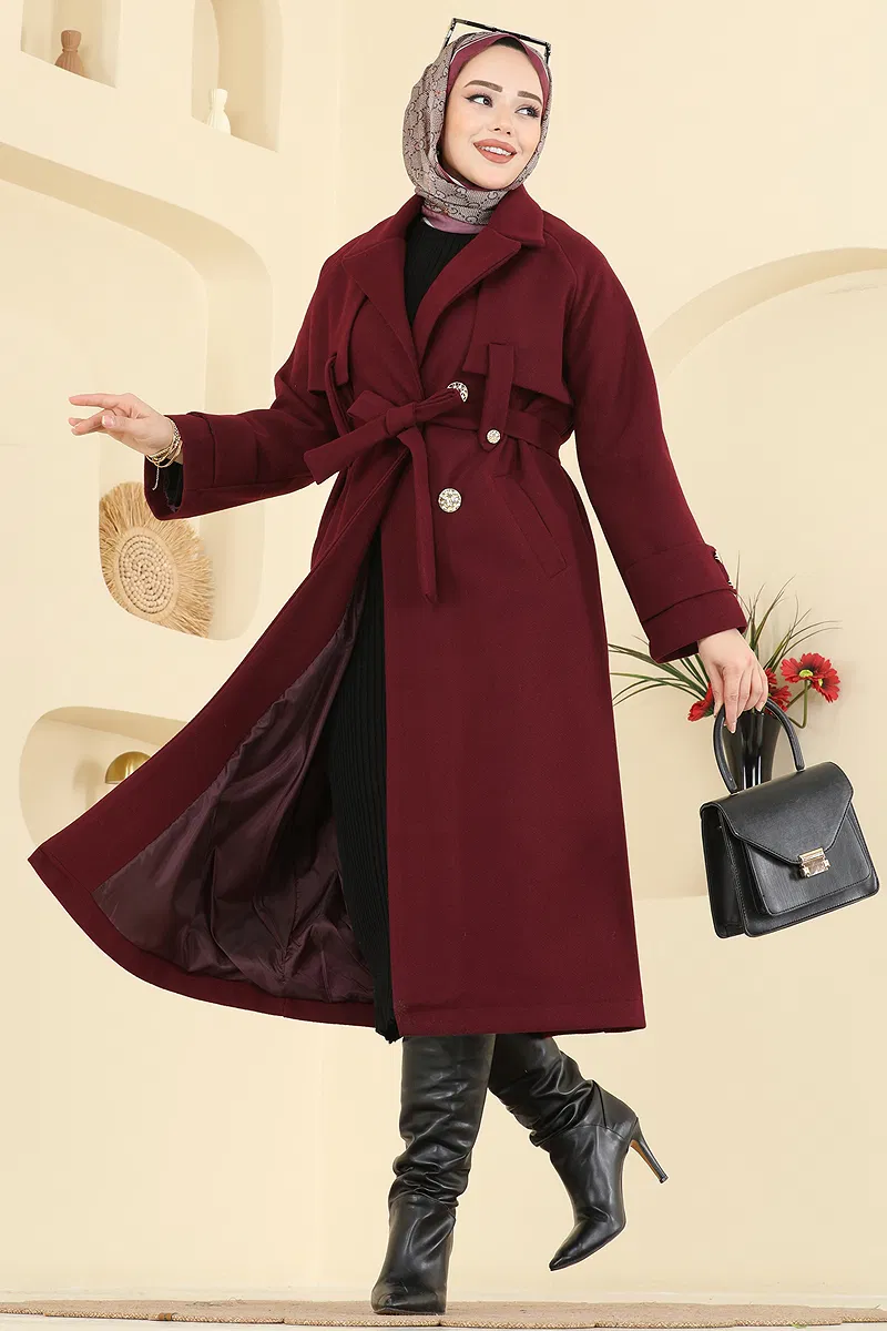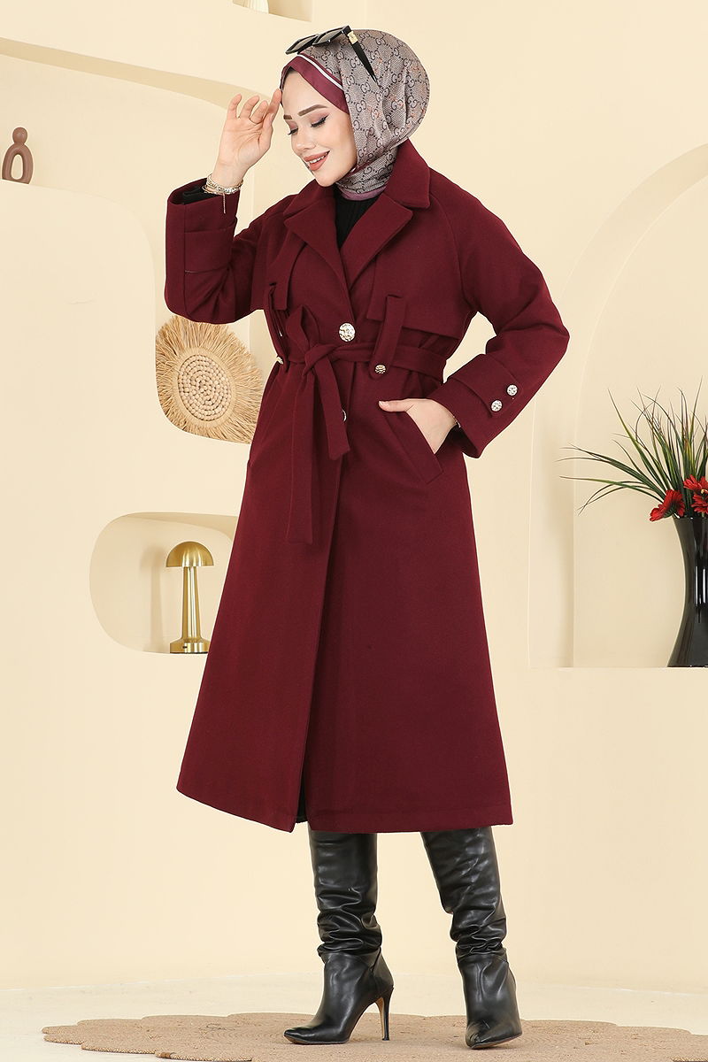 Şık Düğmeli Kaşe Kaban 6264BSK463 Bordo