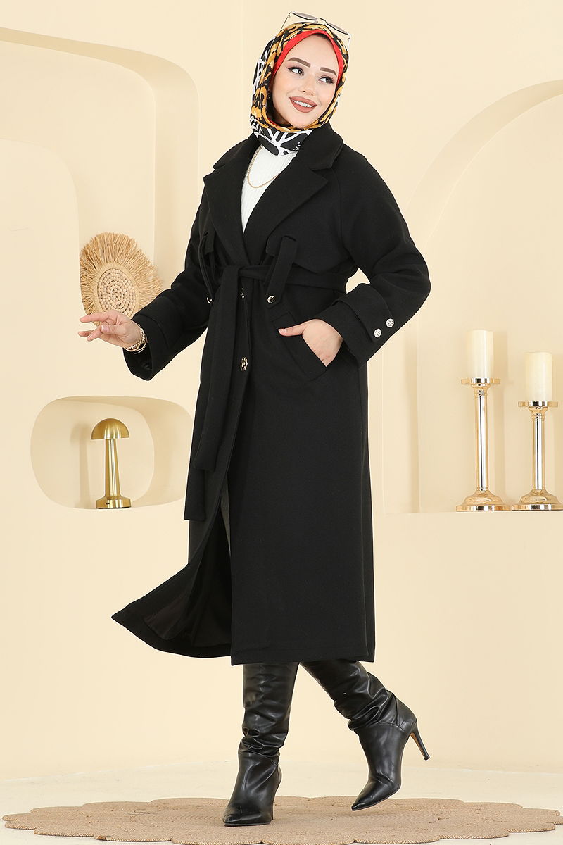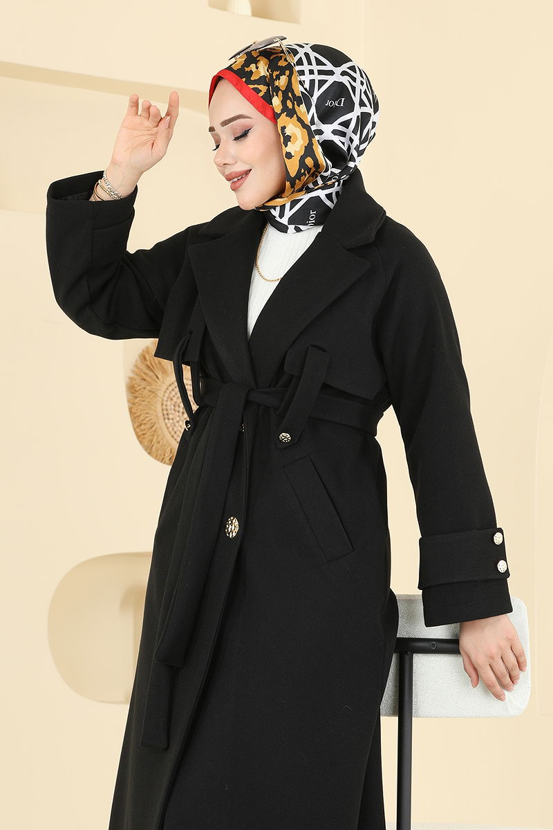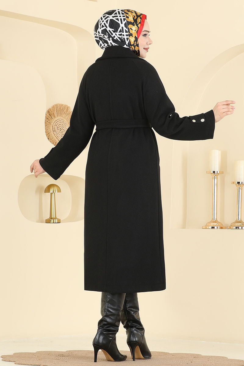 Şık Düğmeli Kaşe Kaban 6264BSK463 Siyah