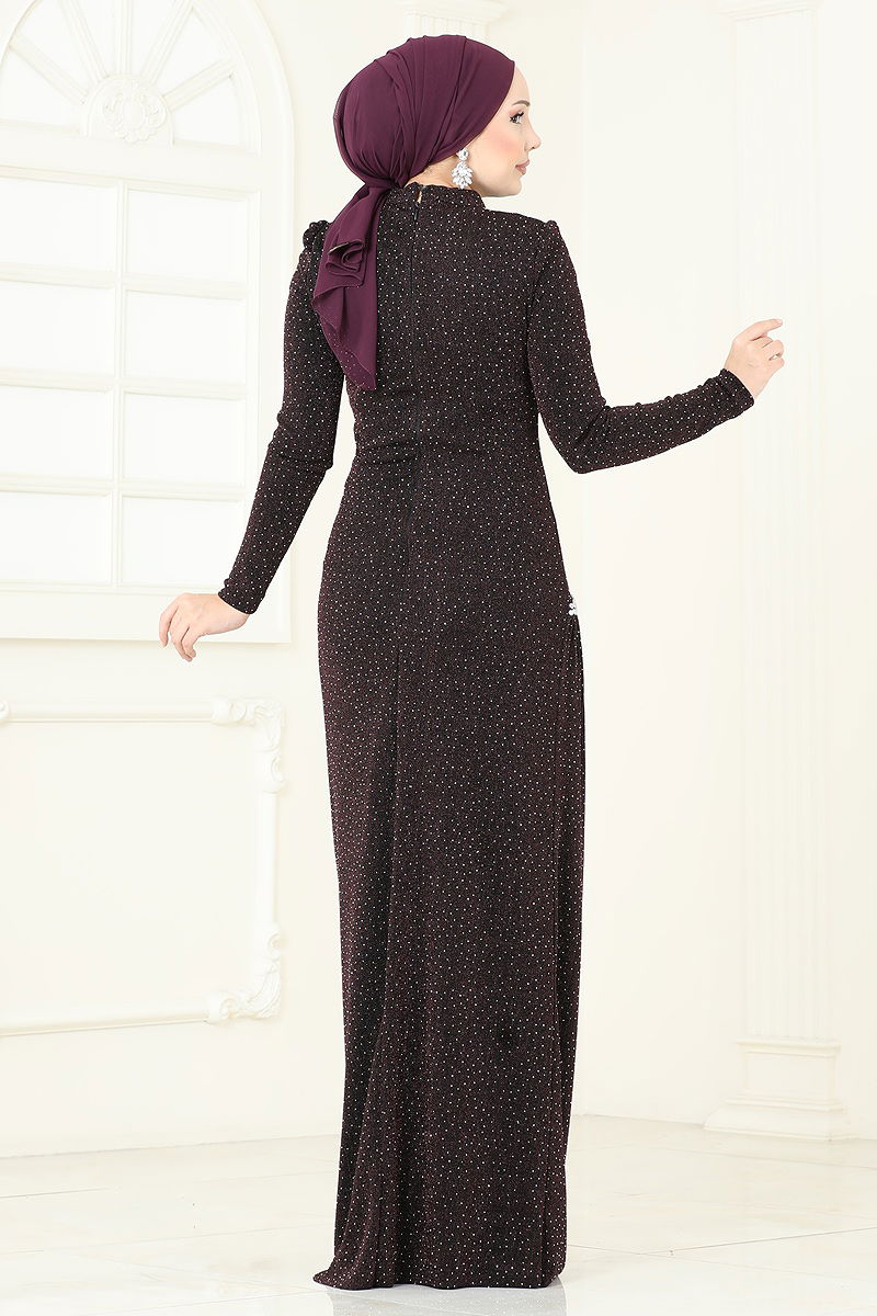 Sim Detaylı Şık Abiye 2447ANT466 Koyu Mürdüm