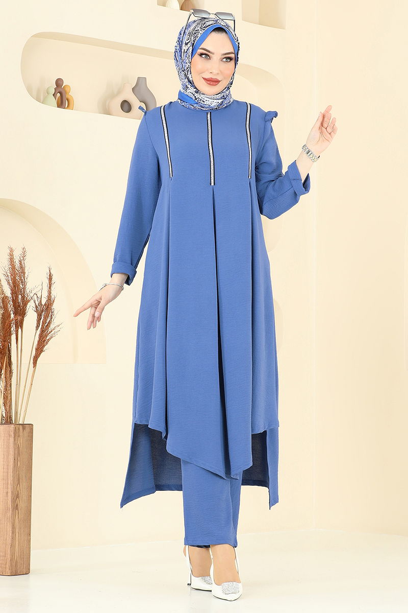 Sim Şeritli Tesettür Takım İndigo