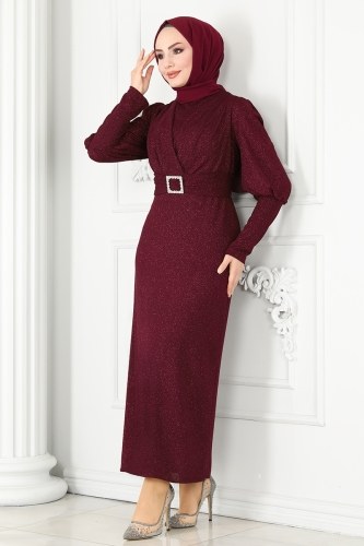 Balon Kollu Abiye Elbise 4549ALG474 Bordo