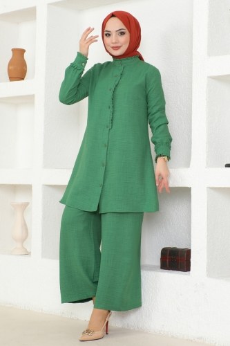 Gömlek Yakalı Aerobin Elbise 860NZR779 Zümrüt&Ekru