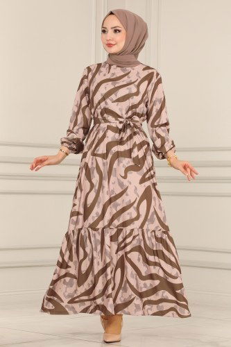 Eteği Fırfırlı Tesettür Elbise 1111BG354 Vizyon