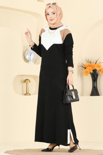 Renkli Garnili Triko Elbise 2002MT581 Siyah