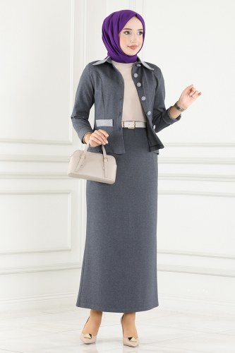 Kışlık Etekli Takım 121DVL817 Koyu Gri