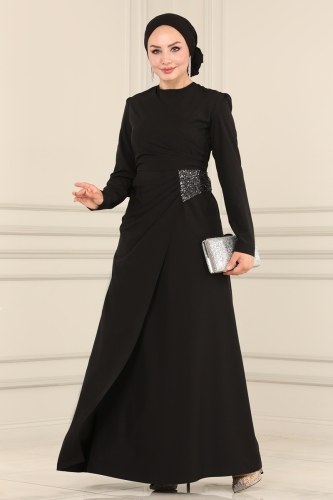 Pul Detaylı Tesettür Elbise ASM2602 Siyah