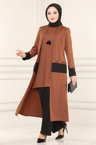 Kolyeli Tesettür Takım ASM2325 Taba&Siyah