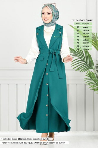 Kruvaze Yaka Tesettür Takım 23100UKB929-M Petrol