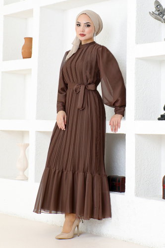 Piliseli Şifon Abiye END5505-M Kahve