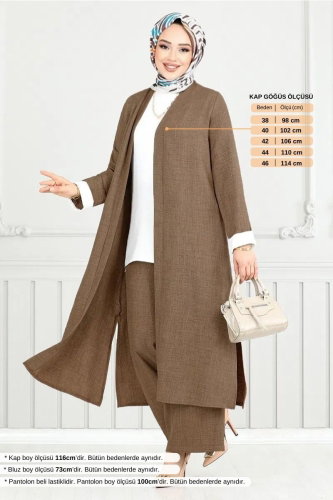 Yırtmaçlı Üçlü Takım 1774LNA1042-M Açık Kahve
