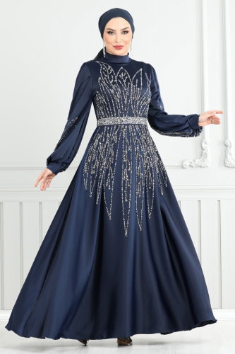 Önü Taşlı Saten Abiye 5675END900-M Laci