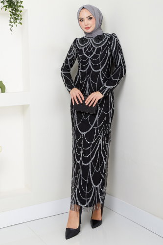 Sim Detaylı Şık Abiye 5631END900-M Siyah