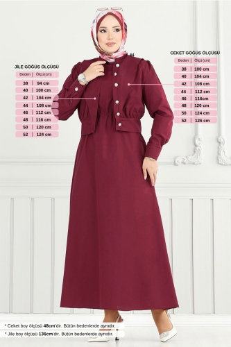Tesettür Jile Takım 4450KTR927-M Bordo