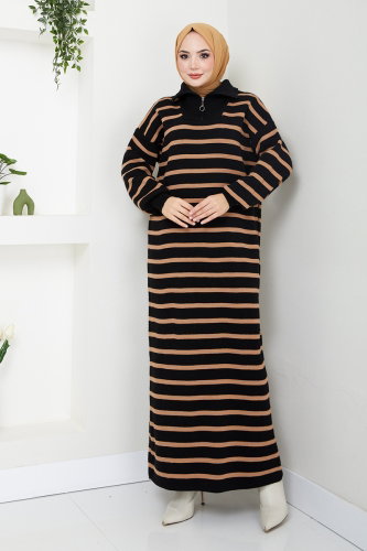 Çizgili Triko Elbise 6025KL1035-M Siyah