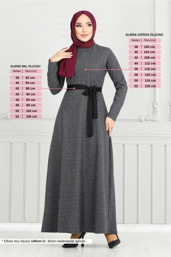 Kemerli Balıksırtı Elbise 22033UKB929-M Antrasit