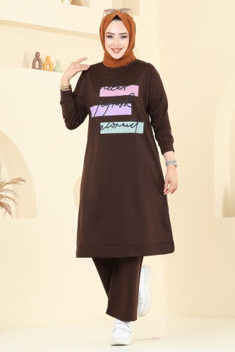 Yandan Yırtmaçlı Triko Takım 1020KLB1050 Kahve