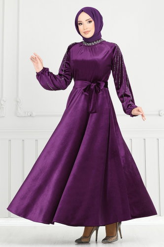Kolları Taşlı Kadife Abiye 2014EFY931-M Mor