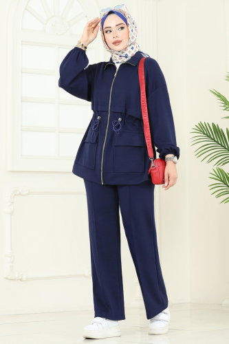 Beli Tünelli Tesettür Takım 23009UKB139 Laci