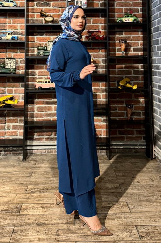 Yakası Taşlı Tesettür Takım 9038S324 Laci