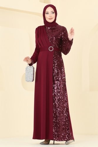 Payet Detaylı Tesettür Abiye ASM2516-M Bordo