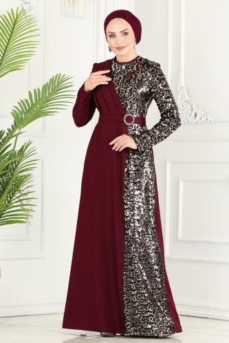 Payet Detaylı Tesettür Abiye ASM2516-M Bordo&Gold