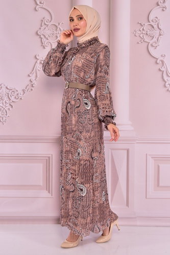 Kolları Manşetli Tesettür Elbise NEV14928-M Vizyon