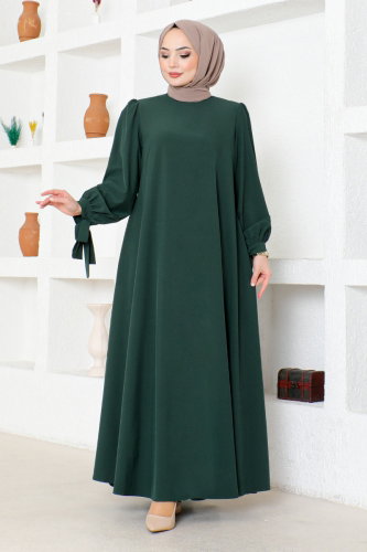 Manşeti Bağcıklı Elbise ASM2696-M Zümrüt