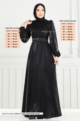 Kemeri Taşlı Tesettür Abiye 2330ANT904-M Siyah