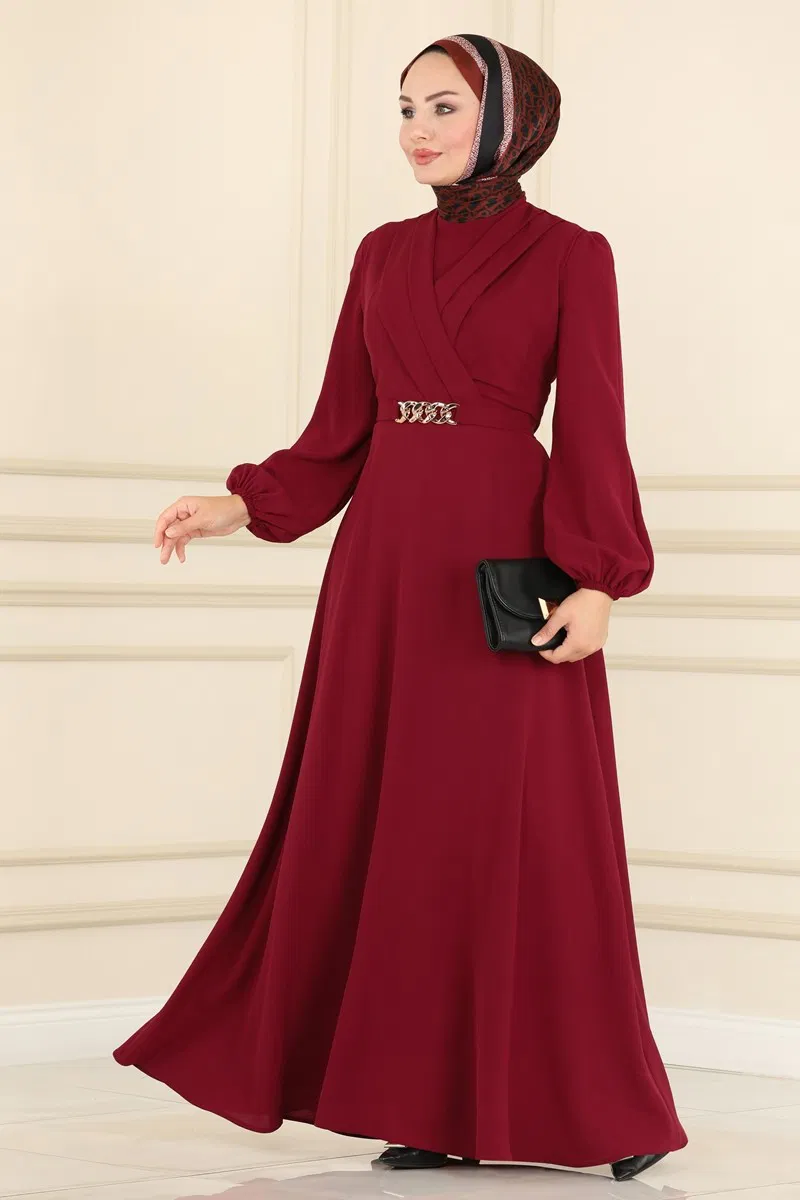 Asimetrik Kesim Tesettür Takım 2695SL432 Bordo