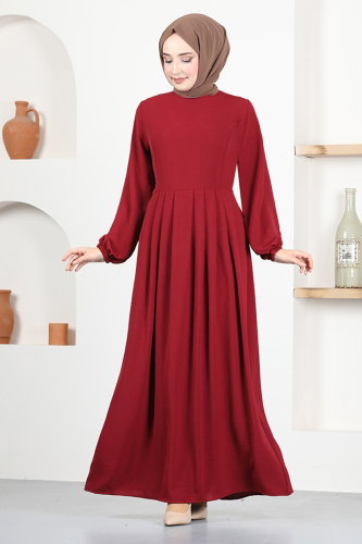 Kolları Manşetli Elbise ASN216-M Bordo