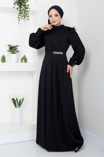 Taş Detaylı Tesettür Abiye 271DVL897-M Siyah