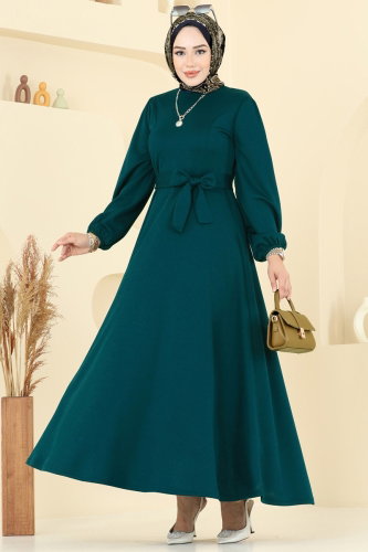 Beli Kuşaklı Elbise 25029UKB139 Petrol