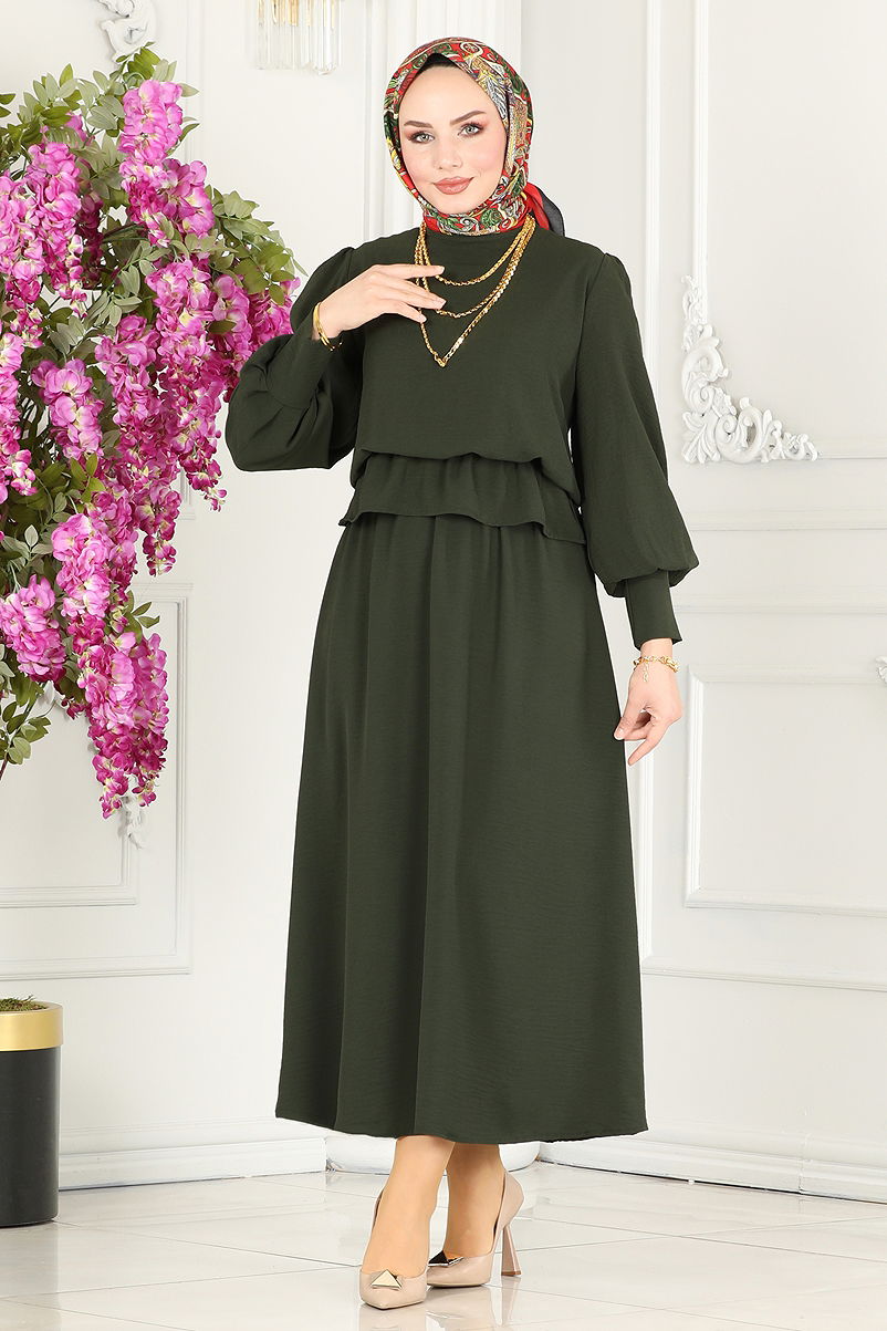 Product Feature:It is a new season hijab fashion product. (It is unlined.) It has a bicycle collar. It has a button that can be used from the back. It has an elastic waist. Accessories are not included in the product. The skirt has an elastic waist. There may be a tonal difference in the product color due to concept shots.