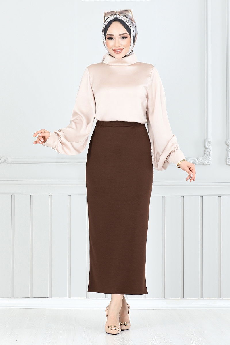 Elegant and practical, the Elastic Pencil Skirt is a modest attire perfect for all seasons. It can be washed gently at 30 degrees and is made from durable Dabıl fabric. This skirt is unlined, promoting a light and comfortable wear. The elastic waist ensures a perfect fit for any size. A staple for modern and practical dressing, this skirt is ideal for everything from professional settings to everyday wear.