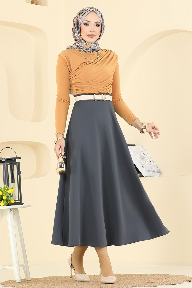 غير مبطنة. البلوزة غير متضمنة. صُنعت عينة من المجموعة مع البلوزة لإظهار الاستخدام المقصود للمنتج. الحزام غير متضمن. .خصر التنورة مرن قد يكون هناك اختلاف في الدرجة اللونية في المنتج بسبب التقاط الصور الفوتوغرافية.